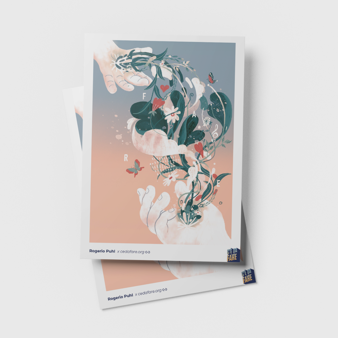 Questa cartolina è un simbolo potente di speranza, aiuto e sostegno reciproco. Rappresenta l’atto di tendere una mano a chi ne ha bisogno e la forza che nasce quando ci si sostiene a vicenda.